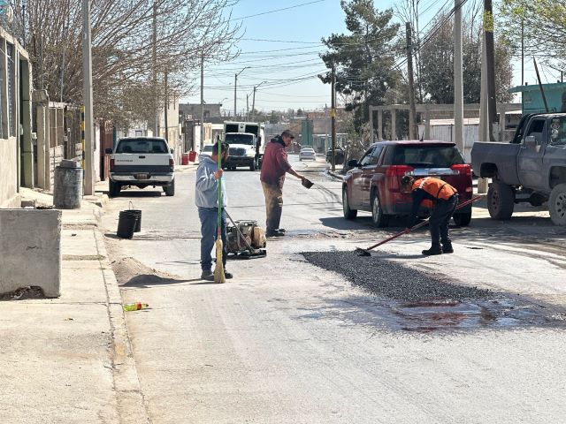 Como parte de los trabajos permanentes de atención a las calles de Juárez, la Dirección General de Obras Públicas llevó su programa de bacheo a