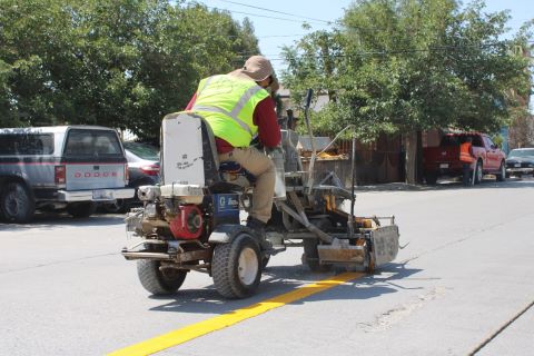Control de Tráfico realiza pintura vial en calles Grosella y Morelia para mejorar seguridad