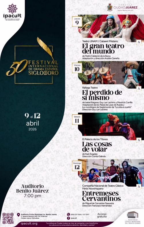3 de abril de 2026. La riqueza del teatro clásico español cobrará vida en Ciudad Juárez con la llegada del 50 Festival Internacional de Drama
